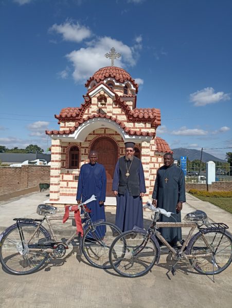 Την επομένη ημέρα, Δευτέρα 20 Ιουνίου, ο Θεοφιλέστατος δώρησε, στη μνήμη της μητέρας του, δύο ποδήλατα στους δύο νεοχειροτονημένους ιερείς της επισκοπής, τον π Βασίλειο και τον π. Παΐσιο. Τα ποδήλατα για τους ιερείς του Μαλάουι αποτελούν το συνηθέστερο μεταφορικό μέσο για τις ιεραποστολικές τους περιοδείες. Διανύουν δεκάδες χιλιόμετρα και με αυτό μπορούν να φτάνουν και στις πιο απόμακρες περιοχές της ενορίας τους.