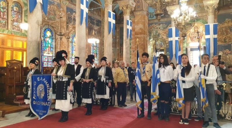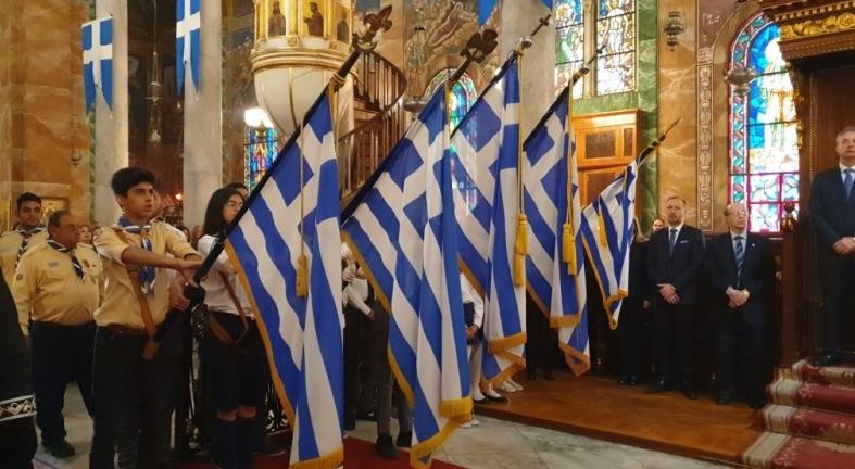 Προ της απολύσεως της Πατριαρχικής Θείας Λειτουργίας πραγματοποιήθηκε, εντός του Ιερού Ναού, η Δοξολογία για την Εθνική Επέτειο και η καθιερωμένη επιμνημόσυνη δέηση υπέρ των αγωνισαμένων και πεσόντων κατά τους αγώνες του Έθνους και κατάθεση στεφάνων στα δύο ηρώα στον προαύλιο χώρο του Ιερού Ναού.