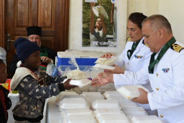 Αργότερα, μοιράστηκε γεύμα αγάπης από τους Ολυμπιονίκες μας στο προαύλιο χώρο της εκκλησίας.