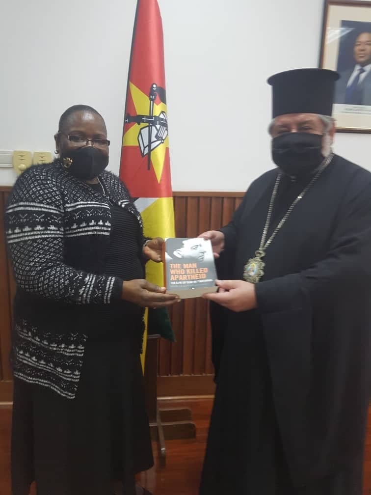 Σε ιδιαίτερα θέρμο κλίμα πραγματοποιήθηκε η συνάντηση της Υπουργού Εξωτερικών της Μοζαμβίκης αξιότιμης κ. Verónica Nataniel Macamo Dlovo, με τον Σεβ. Μητροπολίτη Ζάμπιας και τοποτηρητή της Ιεράς Επισκοπής Μοζαμβίκης κ. Ιωάννη στο Υπουργείο Εξωτερικών στην πρωτεύουσα της χώρας Μαπούτο, την Παρασκευή 4 Ιουνίου 2021.