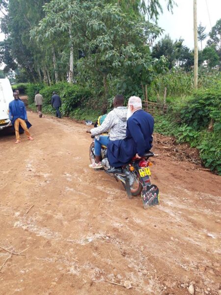 Ο Σεβ. Μητροπολίτης Γέρων Ναϊρόμπι, Υπέρτιμος και Έξαρχος Κένυας, κ. Μακάριος, αναγκάστηκε να ανέβει στο μικρού κυβισμού μηχανάκι κάποιου εν Χριστώ αδελφού.