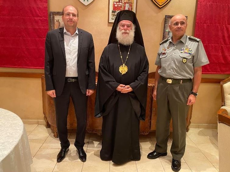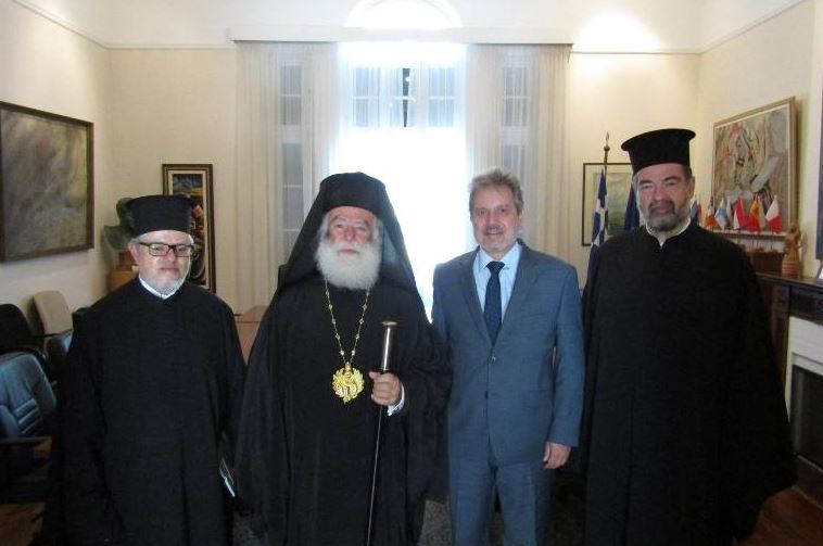 Ο Μακαριώτατος συναντήθηκε επίσης με τον Πρέσβη της Ελληνικής Δημοκρατίας στην Κύπρο κ. Θεοχάρη Λαλάκο, συνοδευόμενος από τον Σεβασμιώτατο Μητροπολίτη Γουινέας κ. Γεώργιο και τον Θεοφιλέστατο Επίσκοπο Νιτρίας κ. Νικόδημο, Έξαρχο του Πατριαρχείου στην Κύπρο.