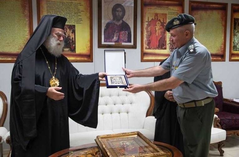 Την ιερά εικόνα της Παναγία Παντάνασσας, στο Τάγμα Στρατηγείου τού ΓΕΕΦ, προσκύνησε το απόγευμα τής Τρίτης 15ης Σεπτεμβρίου, η Α.Θ.Μ. Πάπας και Πατριάρχης Αλεξανδρείας και πάσης Αφρικής κ.κ. Θεόδωρος Β’. Αφού έτυχε θερμής υποδοχής από τον ίδιο τον αρχηγό τής Εθνικής Φρουράς Αντιστράτηγο Δημόκριτο Ζερβάκη, ο Μακαριώτατος έψαλε με ιδιαίτερη κατάνυξη το Κοντάκιον τού Ακαθίστου Ύμνου «Τῇ Ὑπερμάχῳ».