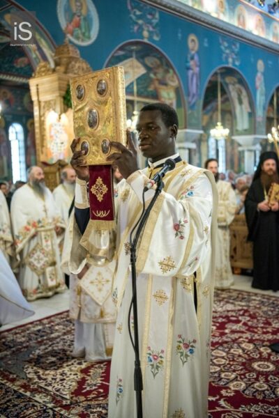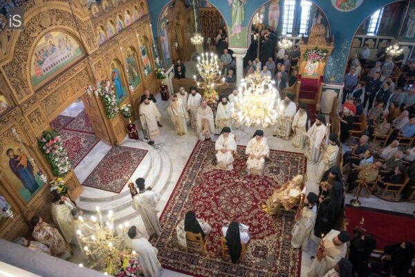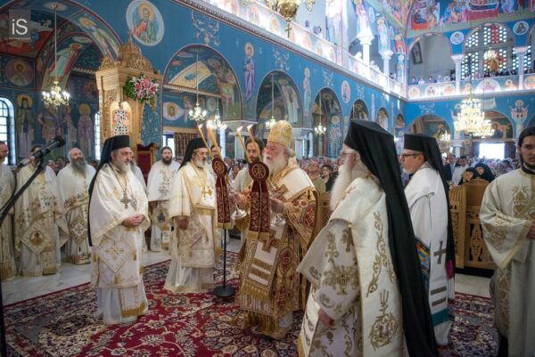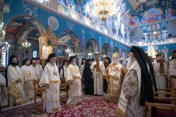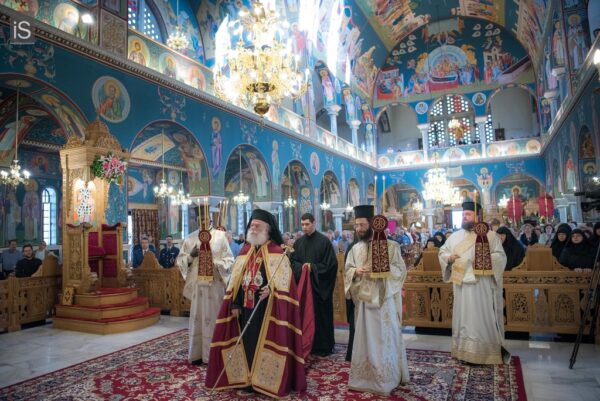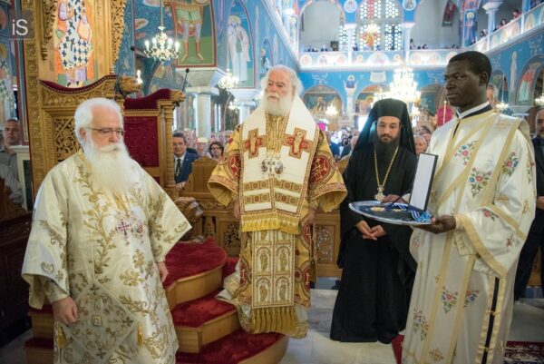 Εορτή, συνεπώς, θριάμβου και επαγγελίας, η Ανάληψη του Χριστού μας, όντως, αποτελεί αιτία ιδιαίτερης χαράς και πανηγύρεως. Της τελευταίας υποθήκης του Κυρίου μας άπτεται, όμως, και η άλλη αφορμή της χαράς μας. Λαμπροφορεί και σεμνύνεται σήμερα η τοπική μας Εκκλησία, καθώς έχει την ευλογία να φιλοξενεί και να προσφέρει στο θεοφιλές πλήρωμά της την ζωντανή απόδειξη, ότι η τελευταία επιθυμία του Χριστού μας επί της γης εκπληρώνεται καθημερινά με ένθεο ζήλο. «Έσεσθέ μοι μάρτυρες…… έως εσχάτου της γης» είχε ζητήσει λίγο προτού αναληφθεί. Και ιδού, ανάμεσά μας, ευλογών, ιερουργών και προεξάρχων, ίσταται η Αυτού Θειοτάτη Μακαριότης, ο περικλεής Πάπας και Πατριάρχης Αλεξανδρείας και πάσης Αφρικής, κ. Θεόδωρος ο Β’. Είναι η μορφή, που καταθέτει έως τις εσχατιές της Αφρικανικής γης τη σώζουσα μαρτυρία της Ορθοδοξίας μας, που ευαγγελίζεται την ελπίδα και την εμπειρία της Αναστάσεως. Στα βήματα του Αποστόλου και Ευαγγελιστού Μάρκου, αγκαλιάζει έθνη και λαούς, απεργάζεται με κόπους και θυσίες την ενότητά τους στην κοινή κολυμβήθρα της πίστης μας, αναλώνεται σε μία πολυσχιδή ποιμαντική, ιεραποστολική και θυσιαστική διακονία. Η σεπτή παρουσία του, όντως, κοσμεί τον Πατριαρχικό θρόνο της Αλεξάνδρειας, της πόλης του μύθου και της μνήμης, της διανόησης και της μεγάλης λογοτεχνικής και καλλιτεχνικής παράδοσης, των διαπρεπών Ελλήνων και Αιγυπτιωτών ευεργετών. Και αν κάποτε ο φάρος της πόλης αποτελούσε ένα από τα επτά θαύματα του αρχαίου κόσμου, οπωσδήποτε το έργο που επιτελείται σήμερα από το Πατριαρχείο Αλεξανδρείας, μαρτυρεί το σύγχρονο θαύμα της πίστης μας, και θεμελιώνει στην περιοχή, εν μέσω πολυειδών κρίσεων και προβλημάτων, την προοπτική της προόδου και της ευημερίας».