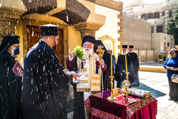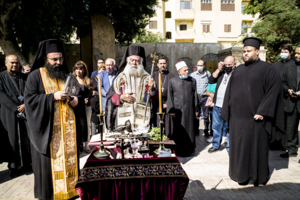 Ο Μακαριώτατος Πατριάρχης Αλεξανδρείας Θεόδωρος οδήγησε τους πιστούς μπροστά από τον χώρο του Πατριαρχικού Κέντρου Μελετών και Διαλόγου όπου και χοροστάτησε στον αγιασμό ανοίγοντας με χαρά και ελπίδα, όπως τόνισε χαρακτηριστικά την πόρτα της συναδέλφωσης και της αγάπης μεταξύ όλων των ανθρώπων ανεξαρτήτου θρησκείας και εθνότητατας.