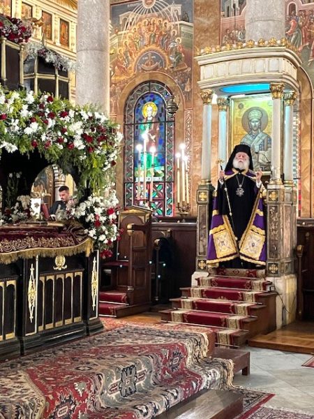 Ακόμη, διαπύρως προσευχήθη υπέρ επικρατήσεως της ειρήνης στην πολύπαθη περιοχή της Μ.Ανατολής, στην Ουκρανία και όπου γης δοκιμάζονται οι λαοί από πολεμικές συρράξεις και αδελφοκτόνες αιματοχυσίες.