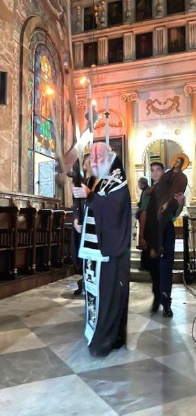 Με θρησκευτική κατάνυξη τελέσθησαν σε όλους τους Ιερούς Ναούς της Αλεξανδρείας οι Ιερές Ακολουθίες της Μεγάλης Εβδομάδος. Η ΑΘΜ ο Πάπας και Πατριάρχης Αλεξανδρείας και πάσης Αφρικής κ.κ. Θεόδωρος Β’ προεξήρχε των Ιερών Ακολουθιών, επισκεφθείς τις Ενοριακές Κοινότητες της Μ. Πόλεως. Ο Μακαριώτατος προσευχήθηκε υπέρ επικράτησης της ειρήνης στην Μέση Ανατολή, στην Ουκρανία και όπου γίνονται πολεμικές συρράξεις.