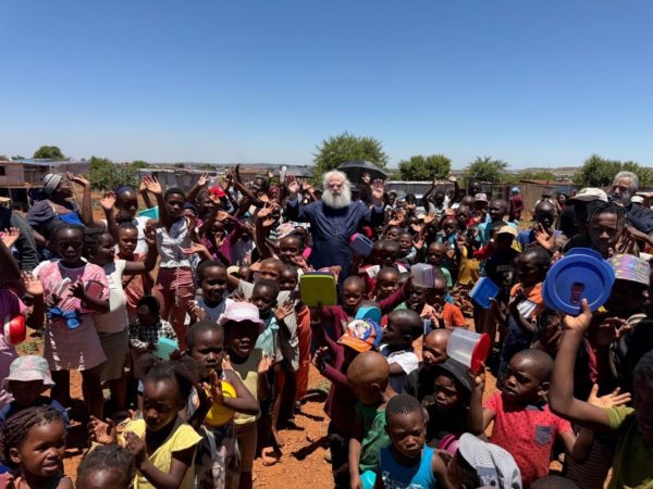 Στην συνέχεια ο Πατριάρχης και η συνοδεία του μετέβησαν σε μια παραγκούπολη της περιοχής Orange Farm, από τις φτωχότερες περιοχές της χώρας που έχει υιοθετήσει ο οργανισμός “Merchants of Life” υπό την αιγίδα της κας. Αικατερίνης Κωνσταντινίδη και με βαθιά συγκίνηση και προβληματισμό για την αδιαφορία των μεγάλων της γης, μοίρασε παιχνίδια και φαγητό στα φτωχά παιδιά του συνοικισμού με φροντίδα του Άρχοντα Ιωάννη Μπαλαδάκη και του Παναγιώτη Μπαλαδάκη.