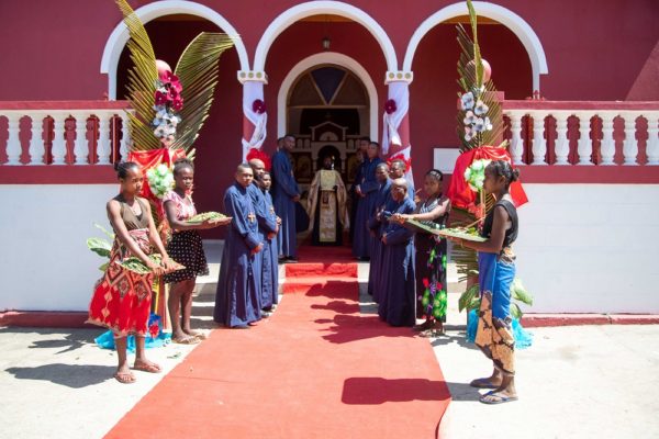 Επιπλέον η φιλαρμονική της πόλεως Τολιάρα παιάνισε τον ελληνικό εθνικό ύμνο, – αυτό συμβαίνει όχι λόγω μιας αποικιοκρατικής αντίληψης στην ιεραποστολή, άλλωστε η Ορθόδοξη ιεραποστολή καυχάται για την μη ανάμειξή της σε αυτό που λέγεται αποικιοκρατία, αλλά γιατί με βάση το πρωτόκολλο του κράτους της Μαδαγασκάρης ο εθνικός ύμνος της χώρας ακούγεται επίσημα μόνο κατά την παρουσία του Πρωθυπουργού και του υπουργού Εξωτερικών.