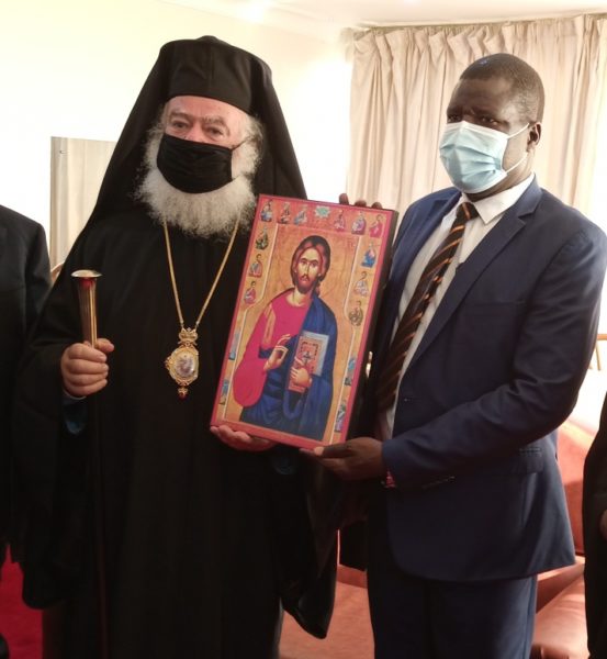 Στην συνέχεια, ακολούθησε Ιερατική Σύναξή με τον κλήρο της Ιεράς Επισκοπής Γκούλου, όπου ο Μακαριώτατος ενίσχυσε με πνευματικές νουθεσίες τους κληρικούς, τονίζοντάς τους την σπουδαιότητα που έχει η υπακοή και η αφοσίωση στον Θεσμό του Παλαιφάτου Αλεξανδρινού Θρόνου.