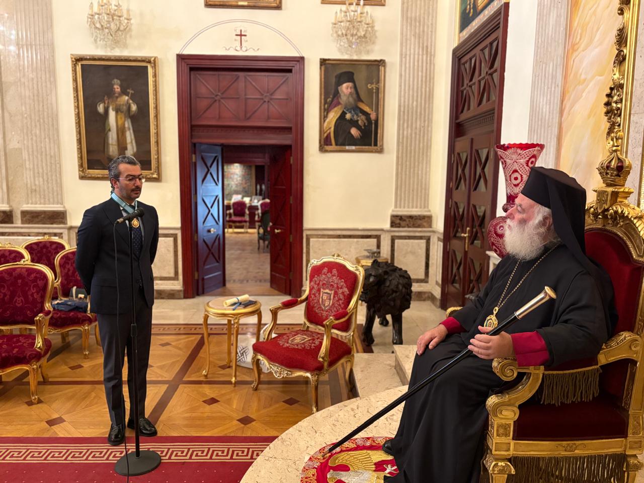 Κατά την προσφώνησή του, ο Μακαριώτατος εξήρε το επαγγελματικό ήθος, τη σοβαρότητα και το πολυδιάστατο δημοσιογραφικό αποτύπωμα του κ. Al Karsheh, τονίζοντας ότι το έργο του δεν περιορίζεται στην απλή καταγραφή της επικαιρότητας, αλλά συμβάλλει ουσιαστικά στην καλλιέργεια συνειδήσεων, στην κοινωνική συνοχή και στον πολιτισμένο δημόσιο λόγο.