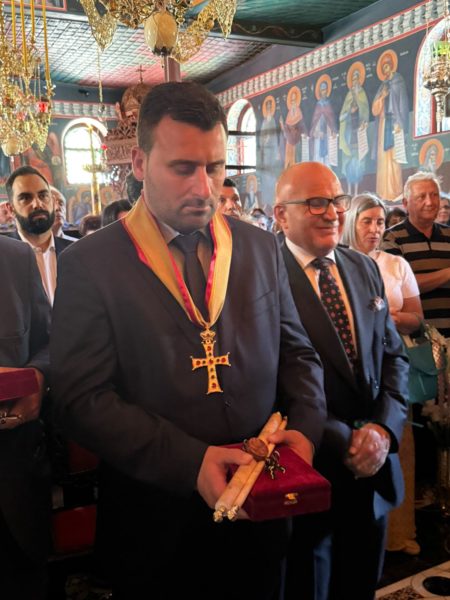 Μάλιστα σύμφωνα με δημοσίευμα του trikalavoice.gr, με το πέρας της Θείας Λειτουργίας, προ της Απολύσως, κατά την πρέπουσα εκκλησιαστική τάξη ο Μακαριώτατος απένειμε τον Σταυρό του Μεγάλου Ευεργέτου της Μονής στον Λευτέρη Αβραμόπουλο, μιλώντας με λόγους επαινετικούς για το ήθος και την σταθερή του υποστήριξη τόσο στις ανάγκες της Μονής, όσο και όπου και όποτε εκλήθη από την Ορθόδοξη Εκκλησία ανά τον κόσμο. Τον νουθέτησε δε πατρικώς να συνεχίσει να πορεύεται καλώς, με φόβο Θεού και βαθιά και ειλικρινή αγάπη.