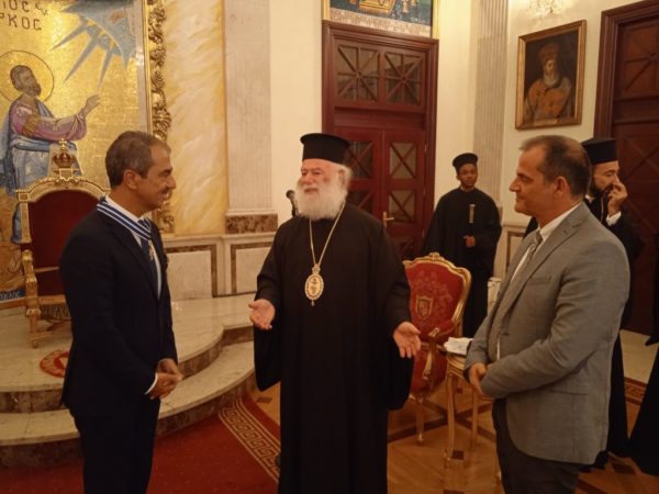 Από την πλευρά του ο τιμώμενος, αναφέρθηκε στην τιμή που αισθάνεται να βρίσκεται στον Ιερό χώρο του Πατριαρχείου Αλεξανδρείας με την σημαντική ιστορία τόσων αιώνων και ευχαρίστησε από καρδίας τον Πατριάρχη για την μεγάλη τιμή που αποδίδεται στο πρόσωπό του.