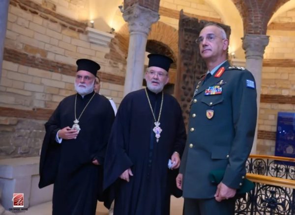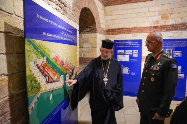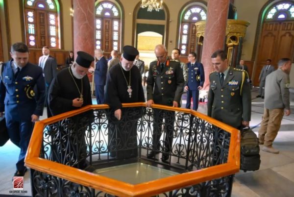 Μετά την ανταλλαγή αναμνηστικών δώρων ο Αρχηγός ΓΕΕΘΑ και η συνοδεία τους είχαν την ευκαιρία να ξεναγηθούν από τον Πανοσ. Αρχιμανδρίτη π Ιωακείμ, στον παλαιό πύργο του Βαβυλωνείου τείχους που τον στέφει ο Ιερός Ναός του Αγίου Γεωργίου, η Ροτόντα της Ανατολής.