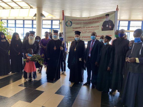 Στο αεροδρόμιο τον Μακαριώτατο υποδέχθηκε ο Θεοφιλ. Επίσκοπος Κισούμου κ. Μάρκος, η εκπρόσωπος του Κυβερνήτη της Επαρχίας, ο Αστυνομικός Διευθυντής της πόλης, ο Αρχιμανδρίτης π. Απόστολος, οι μοναχές της Ιεράς Μονής Παναγίας Τριχερούσας, Αφρικανοί ιερείς και πιστοί.