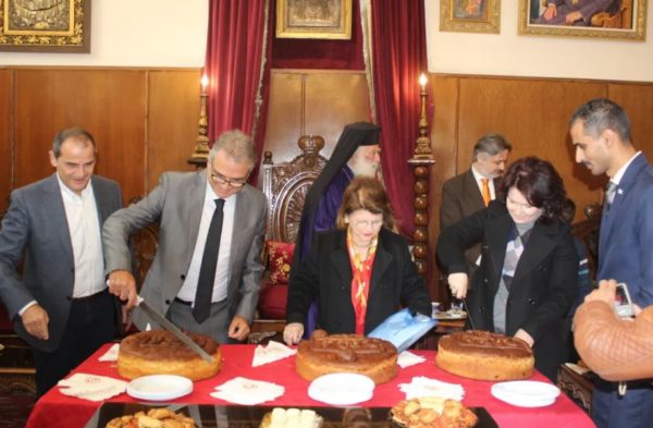 Στην Κοπή της Αγιοβασιλιάτικης Πίτας, παρευρέθησαν οι εξής Σεβασμιότατοι Μητροπολίτες: Πηλουσίου κ. Νάρκισσος Πατριαρχικός Επίτροπος, Ναυκράτιδος κ. Παντελεήμων Αρχιγραμματέας της Ιεράς Συνόδου, Ταμιάθεως κ. Γερμανός, Προϊστάμενος της ανωτέρω Ιεράς Μονής, όπως και ο Πανοσιολογιότατος Αρχιμανδρίτης κ. Ισαάκ, Σχολάρχης της Πατριαρχικής Σχολής. Εκ μέρους της ελληνικής πολιτειακής αρχής, ο Γενικός Πρόξενος κ. Ιωάννης Πυργάκης.
