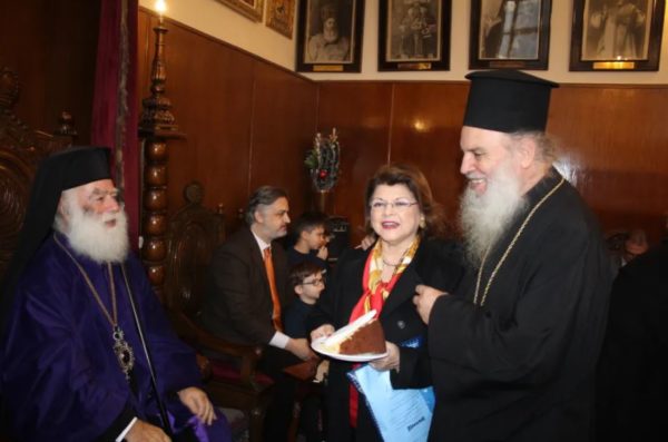 Ο Πατριάρχης κ.κ. Θεόδωρος με λόγια αγάπης, στοργής και επαίνου προς την κ. Αλίκη Αντωνίου αναφέρθηκε στο κοινωνικό έργο που προσφέρει το Λύκειο Ελληνίδων και τη στήριξη που λαμβάνει στις περιοδείες του στην Αφρική.