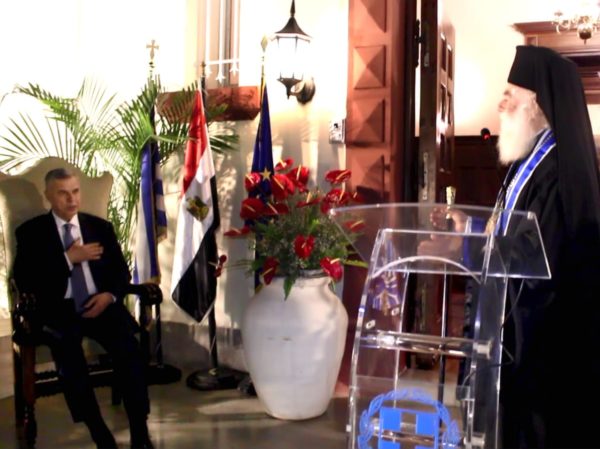 Ο Μακαριώτατος Πατριάρχης κ.κ. Θεόδωρος Β΄, απευθυνθείς με θερμούς πατρικούς λόγους προς τον Γενικό Πρόξενο, επαίνεσε την άψογη διοργάνωση της εορταστικής βραδιάς και τον ευχαρίστησε για τους μεστούς υψηλών νοημάτων λόγους του. Σε αυτούς προσέθεσε τον καταλυτικό ρόλο της Θεοβαδίστου Αιγύπτου, της χώρας που επί 2000 σχεδόν χρόνια περιθάλπει την Αλεξανδρινή Εκκλησία, την αρχαιότερη Αποστολική και ζώσα Εκκλησία στην Αφρικανική ήπειρο, ως αναπόσπαστο πολύτιμο τμήμα της ιστορίας της, καθώς και την φιλάνθρωπη και διακριτική αντιπελάργηση του παλαιφάτου Πατριαρχείου προς τον αιγυπτιακό λαό, ενώ υπογράμμισε τους ισχυρούς δεσμούς φιλίας και συνεργασίας που ενώνουν την Ελλάδα και την Αίγυπτο.