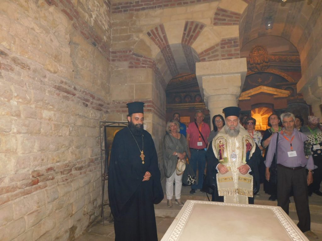 Μαζί με τους πιστούς ξεναγήθηκε στους τάφους των Πατριαρχών και είδαν τις κατακόμβες του ιστορικού μοναστηριού.