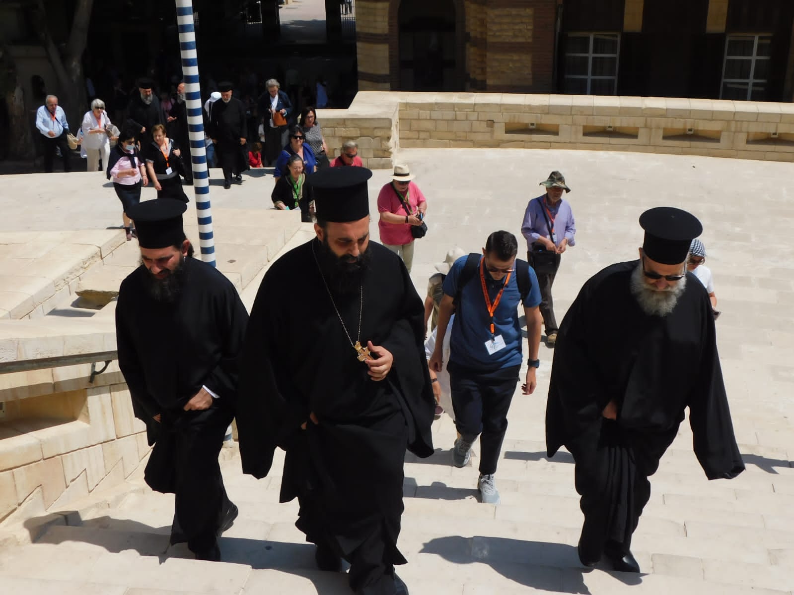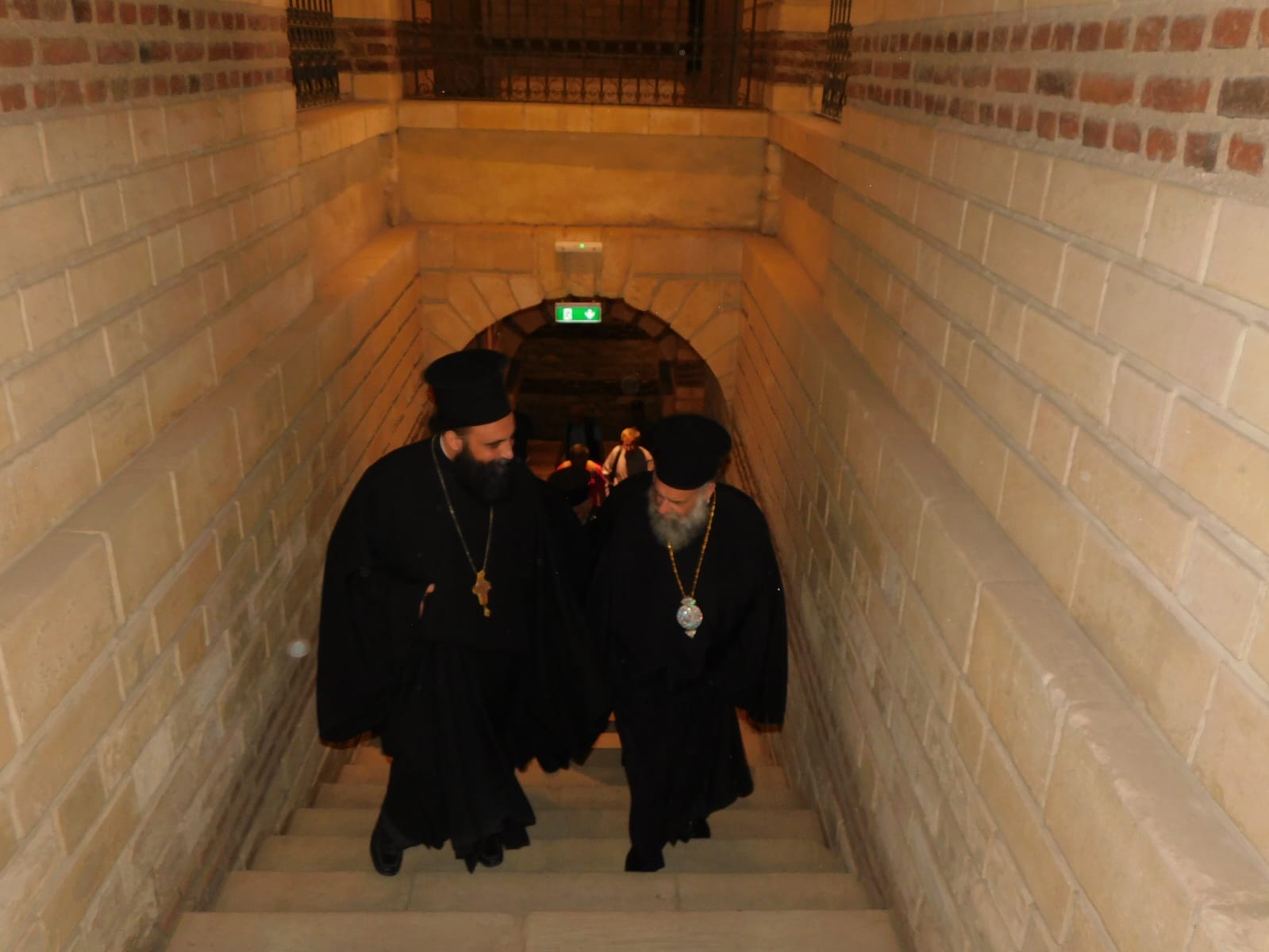 Μαζί με τους πιστούς ξεναγήθηκε στους τάφους των Πατριαρχών και είδαν τις κατακόμβες του ιστορικού μοναστηριού.