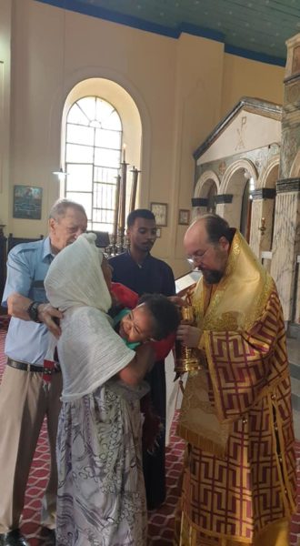 Χτύπησαν Αναστάσιμα οι καμπάνες στην Ανατολική Αιθιοπία! Σε γεμάτο από τη χαρά και τη Χάρη της Ανάστασης του Κυρίου μας κλίμα, εόρτασαν οι ελάχιστοι Έλληνες και Αιθίοπες Ορθόδοξοι πιστοί, που κατοικούν στην πόλη της Ντίρε Ντάουα (Dire Dawa) της ανατολικής Αιθιοπίας, στον Ελληνορθόδοξο Ιερό Ναό Αγίας Τριάδος. Ο Σεβασμ. Μητροπολίτης Αξώμης κ. Δανιήλ ιερούργησε με τη Χάρη του Θεού το Μυστήριο της Θείας Ευχαριστίας, δίδοντας την δυνατότητα στους πιστούς να μεταλάβουν του Κυριακού Σώματος και Αίματος.