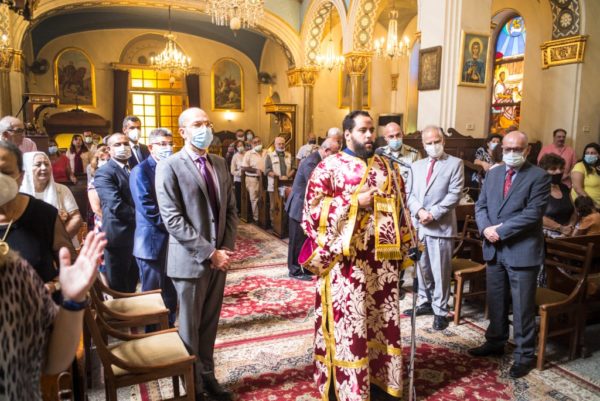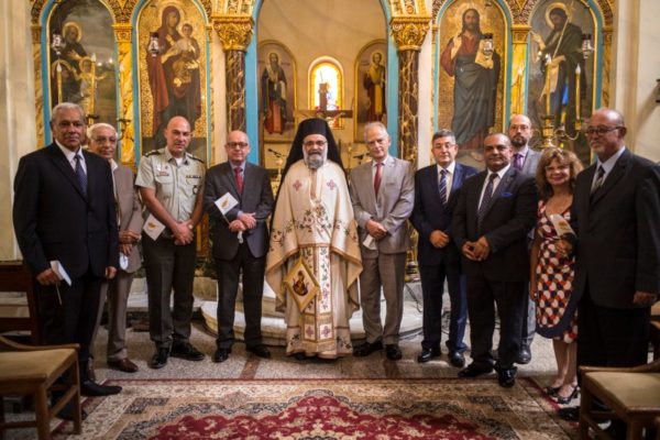 Η θεία Λειτουργία τελέσθηκε από τον Αρχιμανδρίτη Στέφανο ενώ την τελετή τίμησαν με την παρουσία τους ο Πρέσβης της Κυπριακής Δημοκρατίας κ. Όμηρος Μαυρομάτης, ο Έλληνας Πρέσβης κ. Γαριλίδης Νικόλαος, ο νέος Ακόλουθος Άμυνας της Κύπρου Αντισυνταγματάρχης Μηχανικού κ. Κωνσταντίνος Χατζηκωστής , ο Αναπληρωτής Πρέσβης της Κύπρου κ. Κωνσταντίνος Χριστοφίδης, ο Γενικός Πρόξενος της Κύπρου κ. Ασιώτης, ο Πρόεδρος της Κυπριακής Αδελφότητας Καΐρου κ. Αλέξανδρος Καζαμίας και ο Χρίστος Γ. Παπαδόπουλος, Διευθυντής του Ελληνικού Πολιτιστικού κέντρου Καϊρου.