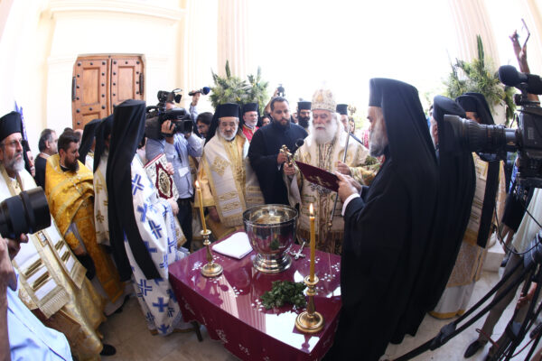 Ο Μητροπολίτης Μεσογαίας κ. Νικόλαος ανέγνωσε το μήνυμα του Αρχιεπισκόπου Αθηνών και πάσης Ελλάδος κ.κ. Ιερωνύμου, στο οποίο μεταξύ άλλων αναφερόταν στον ιστορικό ναό και στην παράδοση του ενώ ευχαρίστησε τον Πατριάρχη και τους συντελεστές του έργου ανακαίνισης. Ο Πατριάρχης ευχαρίστησε τον Μητροπολίτη Μεσογαίας και μίλησε για την στήριξη της Εκκλησίας της Ελλάδος ενώ μιλώντας για το ιεραποστολικό έργο της τοπικής εκκλησίας επεσήμανε πως: “η αγάπη θα νικήσει το σκοτάδι το φως του Χριστού θα λάμψει”.