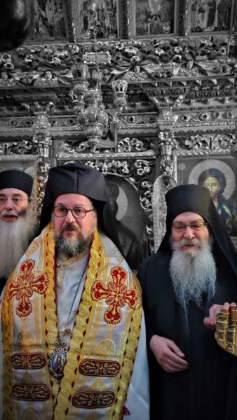 Στην συνέχεια, επισκέφθηκαν την Ιερά Μεγίστη Μονή του Βατοπαιδίου, όπου έγιναν δεκτοί από τον Καθηγούμενο της Ιεράς Μεγίστης Μονής Βατοπαιδίου του Αγίου Όρους Γέροντα Εφραίμ. Ο Γέροντας Εφραίμ απηύθυνε πατρικούς λόγους αγάπης προς όλους, τονίζοντας την ανάγκη ενότητας όλων με τον Επίσκοπό τους.