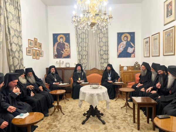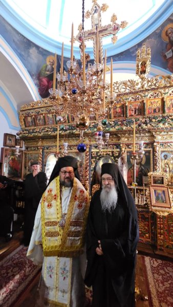 Στην συνέχεια, επισκέφθηκαν την Ιερά Μεγίστη Μονή του Βατοπαιδίου, όπου έγιναν δεκτοί από τον Καθηγούμενο της Ιεράς Μεγίστης Μονής Βατοπαιδίου του Αγίου Όρους Γέροντα Εφραίμ. Ο Γέροντας Εφραίμ απηύθυνε πατρικούς λόγους αγάπης προς όλους, τονίζοντας την ανάγκη ενότητας όλων με τον Επίσκοπό τους.