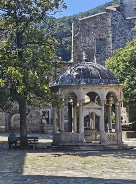 Αμέσως μετά, αναχώρησαν για το ολοήμερο προσκύνημά τους, με πρώτο σταθμό την Ιερά Μονή των Ιβήρων, όπου ασπάσθηκαν την θαυματουργό εικόνα της Υπεραγίας Θεοτόκου “Πορταϊτίσσης”.