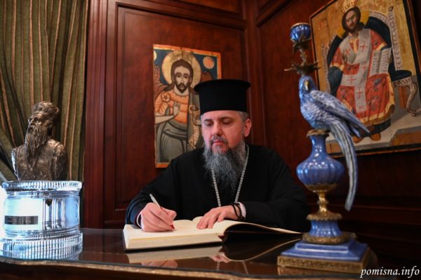 Λίγο πριν την αναχώρησή του ο Μητροπολίτης Κιέβου κ.κ. Επιφάνιος κατέγραψε τις εντυπώσεις του στο βιβλίο των επίσημων προσκεκλημένων.