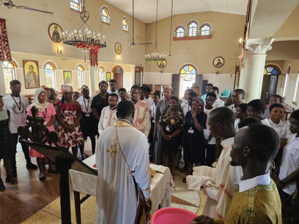 Ακολούθως κατά την Θεία Λειτουργία έψαλαν χορωδιακά όλοι μαζί τους ύμνους, όπως συνηθίζεται στην Γκάνα.
