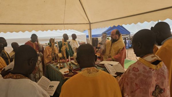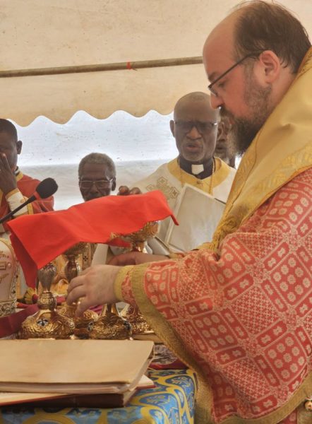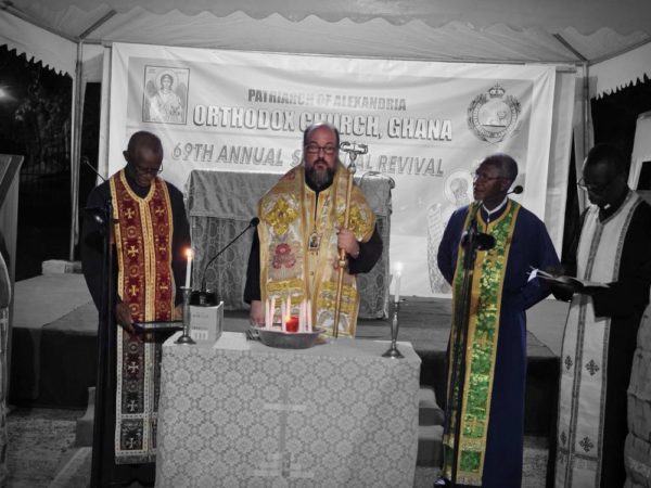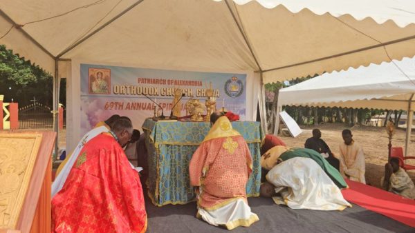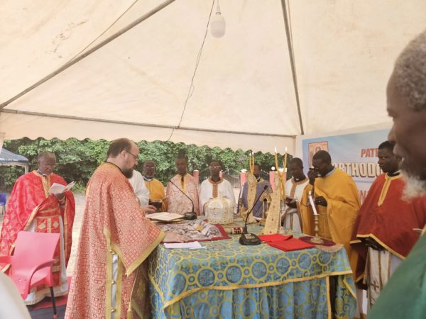 Ο Σεβασμιώτατος Μητροπολίτης Άκκρας κ. Δανιήλ΄περιστοιχισμένος από τους Πρεσβυτέρους, σε διαμορφωμένο χώρο στο προαύλιο, τέλεσε Αρχιερατική Θεία Λειτουργία, κατά την οποία όλοι οι χριστιανοί μετείχαν στο Ποτήριο της Ζωής, μεταλαμβάνοντας το Σώμα και το Αίμα του Κυρίου.
