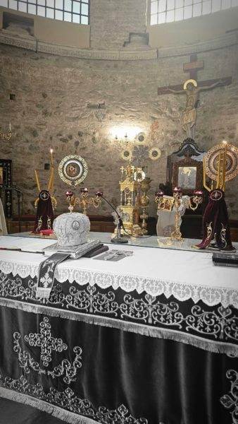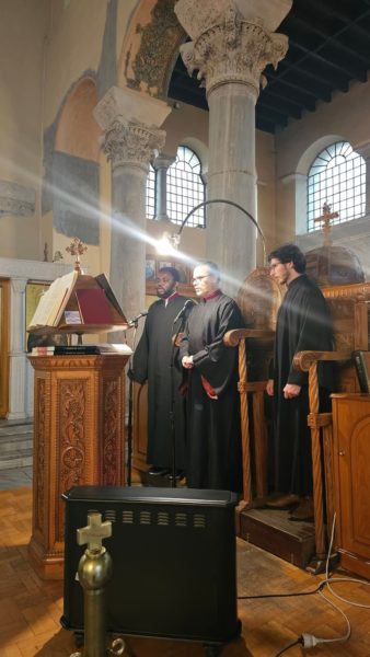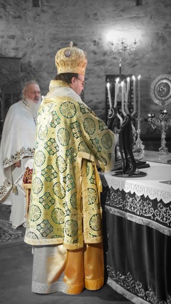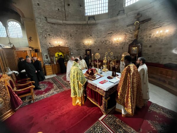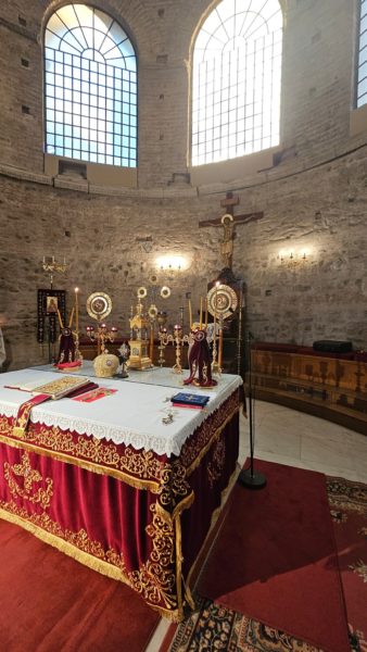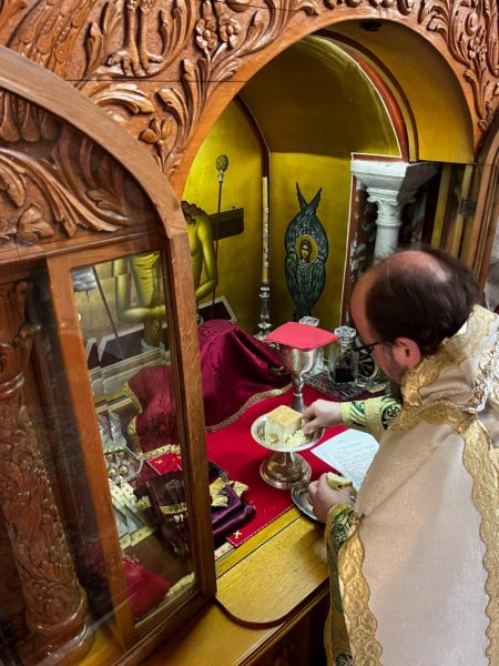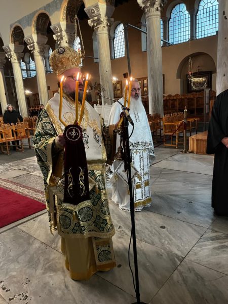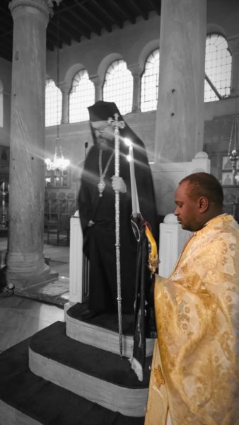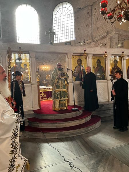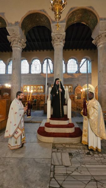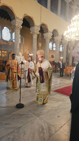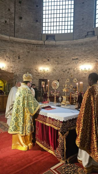 Το πρωί της ίδιας ημέρας, Κυριακή 8 Δεκεμβρίου 2024, με την κανονική άδεια και ευλογία του Παναγιωτάτου Μητροπολίτου Θεσσαλονίκης κ. Φιλοθέου, τέλεσε Αρχιερατική Θεία Λειτουργία στον ιστορικό Ιερό Ναό Παναγίας Αχειροποιήτου Θεσσαλονίκης, όπου μνημόνευσε προσευχητικά όλους τους ευεργέτες της Ορθόδοξης Ιεραποστολής στην Αφρική, κληρικούς και λαϊκούς.