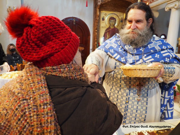 Ο π. Ευάγγελος πριν τον Αγιασμό για το Νέο Έτος, την κοπή και διανομή της Βασιλόπιτας με τον ” ανάλογο μποναμά “, ανέγνωσε ” Αρχαία οπισθάμβωνα ευχή ” του 11ου αιώνα – ευχαριστία προς τον Κύριο ημών Ιησού Χριστό, που δώρισε στην Οικουμένη τον Μέγα Βασίλειο.