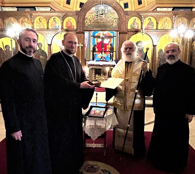 Η ΑΘΜ ο Πάπας και Πατριάρχης Αλεξανδρείας και πάσης Αφρικής κ.κ. Θεόδωρος Β’ παρέδωσε σήμερα στον Σεβασμιώτατο Μητροπολίτη Μιχαλουπόλεως και Κασσοβίας κ. Γεώργιο, Ιεράρχη της Αυτοκεφάλου Εκκλησίας Τσεχίας και Σλοβακίας, απότμημα εκ των τεθησαυρισμένων στην Ιερά Πατριαρχική Μονή Αγίου Γεωργίου Παλιού Καΐρου ιερών λειψάνων των Αγίων Ενδόξων Νεομαρτύρων Γαβριήλ και Κυρμιδώλη, κατόπιν σχετικού παρακλητικού αιτήματος του Σεβασμιωτάτου κ. Γεωργίου.
