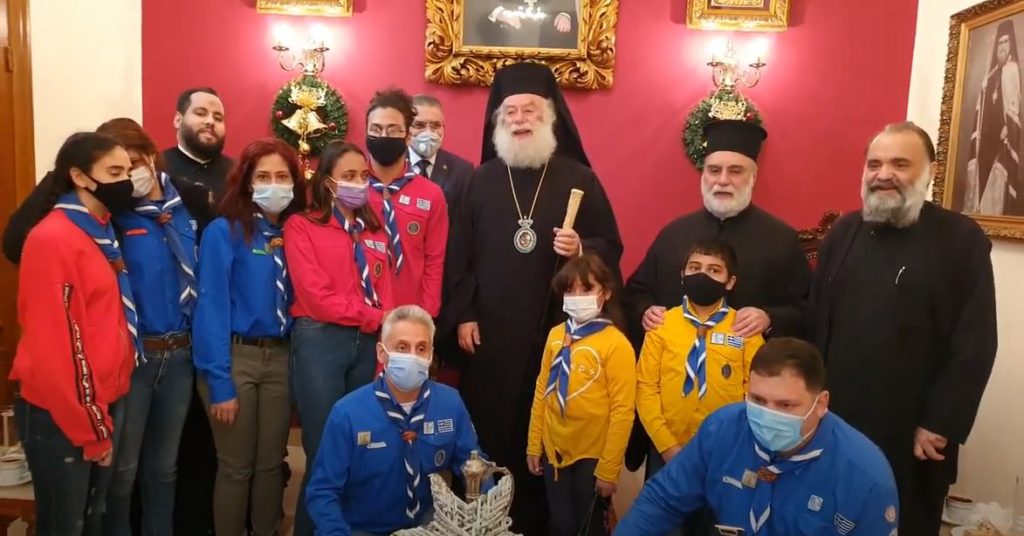 Αμέσως μετά άνοιξε τις πύλες στο Αρχονταρίκι της Επιτροπείας και ο Πατριάρχης Θεόδωρος υποδέχθηκε στην αίθουσα του θρόνου τους Προσκόπους του Καΐρου οι οποίοι του έψαλλαν μαζί του τα Κάλαντα των Χριστουγέννων και της Πρωτοχρονιάς. Ο Προκαθήμενος του Δευτερόθρονου μίλησε με ένα προς ένα τα παιδιά και τους προσέφερε δώρα και γλυκίσματα.
