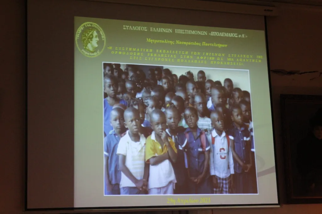Παρουσία του Πάπα και Πατριάρχη Αλεξανδρείας κ.κ. Θεόδωρου ο Μητροπολίτης Ναυκράτιδος κ. Παντελεήμων, μίλησε στον Σύλλογο Επιστημόνων Πτολεμαίος Α΄ για τη «Συστηματική εκπαίδευση των γηγενών στελεχών της Ορθόδοξης Εκκλησίας στην Αφρική ως μια απάντηση στις σύγχρονες πολλαπλές προκλήσεις».