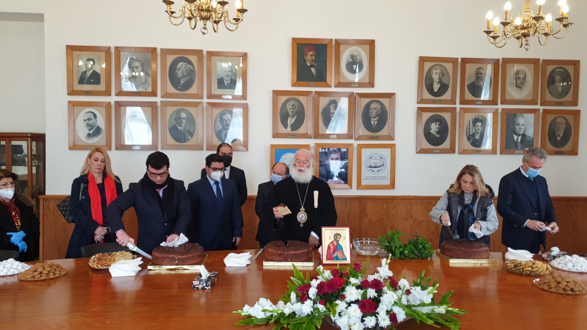 Φόρο τιμής στους Ευεργέτες της Ελληνικής Κοινότητας Αλεξανδρείας απέτισαν χθες ο Πάπας και Πατριάρχης Αλεξανδρείας και Πάσης Αφρικής κ.κ. Θεόδωρος, ο Γενικός Πρόξενος της Ελλάδας στην Αλεξάνδρεια κ. Αθανάσιος Κοτσιώνης και ο Γενικός Γραμματέας της Ελληνικής Κοινότητας Αλεξανδρείας κ. Δημήτρης Κάβουρας, κατά την κοπή της βασιλόπιτας για το 2021.