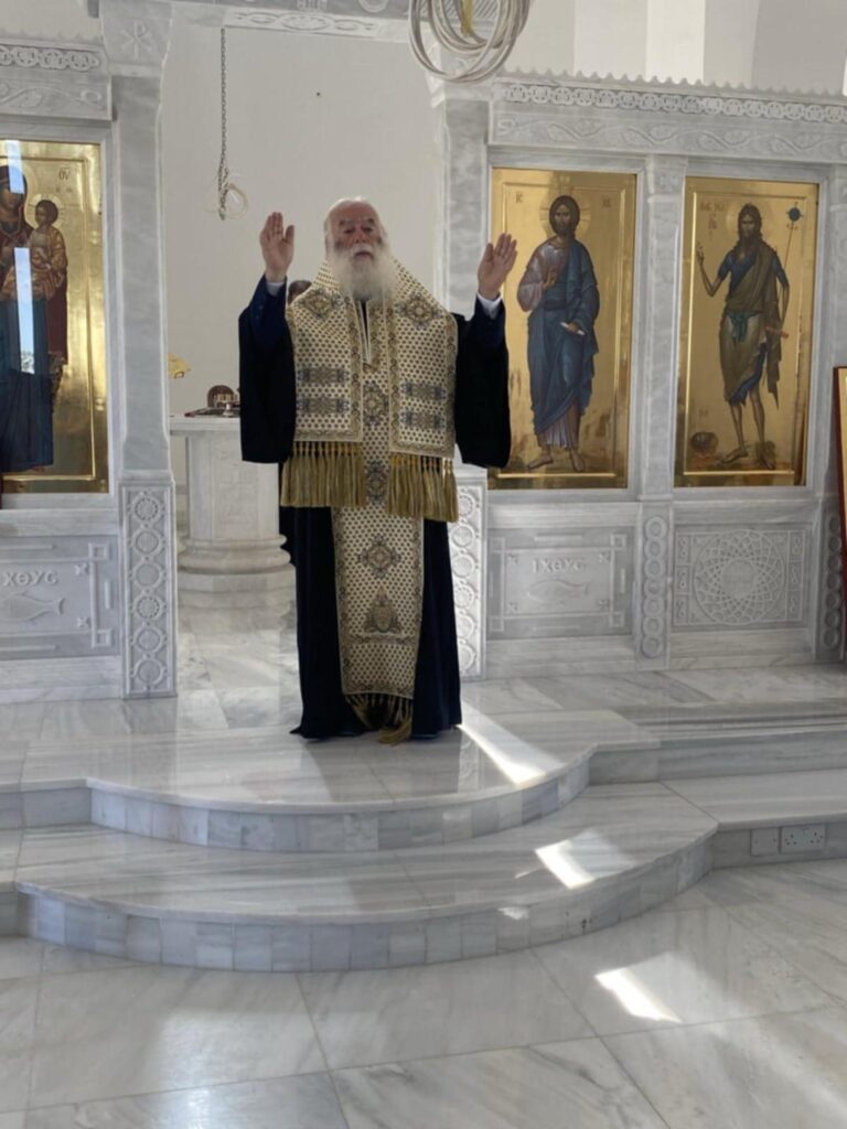 Κατά την έναρξη της Θείας Λειτουργίας, οι πιστοί υπεδέχθησαν με κατάνυξη απότμημα εκ των ιερών λειψάνων του Αγίου Κυρίλλου Λουκάρεως, το οποία έχει παραχωρηθεί από την Ιερά Μονή Αγκαράθου Κρήτης και πλέον φυλάσσεται ως πολύτιμος πνευματικός θησαυρός στον ιερό Ναό του Οσίου Σάββα. Ο Μακαριώτατος εξήρε τη μαρτυρική και φωτεινή μορφή του Αγίου Κυρίλλου, υπογραμμίζοντας τη βαθιά θεολογική του συγκρότηση, την ακλόνητη ορθόδοξη πίστη, την ευθυκρισία και τον πεφωτισμένο θεολογικό του λόγο.