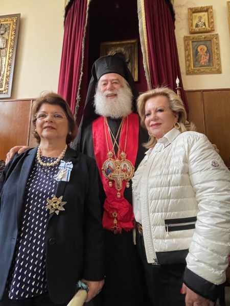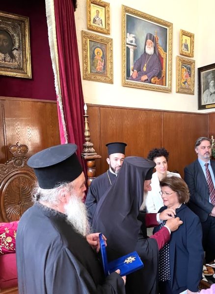 Επίσης, απένειμε τον Ανώτερο Ταξιάρχη του Λεόντος του Αγίου Μάρκου στην κα.Αλίκη Αντωνίου, Πρόεδρο του Παραρτήματος του Λυκείου Ελληνίδων Αλεξανδρείας και τον Ανώτερο Ταξιάρχη του Τάγματος του Οσίου Σάββα στην κατά σάρκαν αδελφήν του, κα. Αργυρώ Μαχλά.