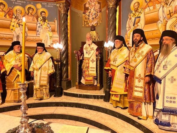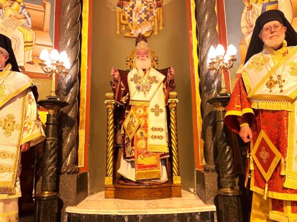 Ὥς ἀντίδωρο ἐλάχιστο γιά τά ὅσα ἡ εὐρυχωρία τῆς πατρικῆς Σας καρδιᾶς προσφέρει σέ ὅλους μας καί τόν καθένα ξεχωριστά, Σᾶς καταθέτουμε τά μύρα τῆς ὑϊικῆς μας ἀγάπης καί τίς ὁλόθερμες ταπεινές εὐχές μας. Ὁ ἐν ἁγίοις ἀναπαυόμενος Θεός, διά πρεσβειῶν τῆς Κυρίας Θεοτόκου πού συμπανηγυρίζει μαζί μας μέ τήν ἀπόδοση τῆς μεγάλης ἑορτῆς τῶν Εἰσοδίων, τῆς παναοιδίμου Νύμφης τοῦ Χριστοῦ Αἰκατερίνης, καί τῶν Μεγάλων Πατέρων πού ἐκλέϊσαν ὡς προκάτοχοι Σας τόν Θρόνο τοῦ Ἁγίου Ἀποστόλου Μάρκου, νά Σᾶς χαρίζει Πατριαρχία μακρά, ἄλυπη και ἀγλαόκαρπη πρωθιεραρχική διακονία, ὥστε νά συνεχίζετε ἕως ἐσχάτης Σας ἀναπνοῆς νά κομίζετε τήν σώζουσα μαρτυρία τῆς Ὀρθοδοξίας μας, πού εὐαγγελίζεται τήν ἐλπίδα καί τήν ἐμπειρία τῆς Ἀναστάσεως. Εἰς πολλά καί Θεοτίμητα ἔτη Μακαριώτατε Πάτερ καί Δέσποτα!»