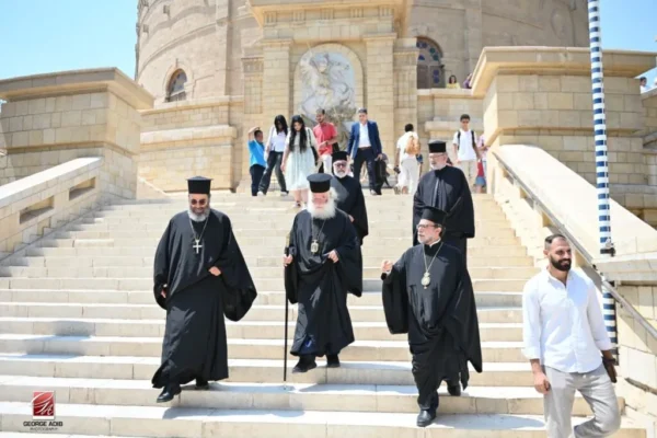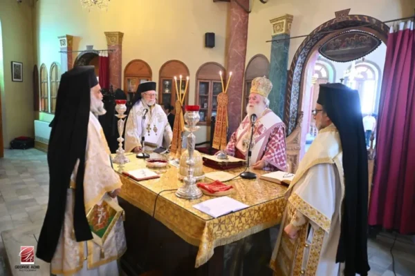Στο πλευρό του Μακαριωτάτου συλλειτούργησαν: ο Σεβασμιώτατος Μητροπολίτης Ερμουπόλεως Νικόλαος, ο Καθηγούμενος της Ιεράς Μονής, Σεβασμιώτατος Μητροπολίτης Νουβίας Σάββας, ο Επίσκοπος Ιππώνος Στέφανος.