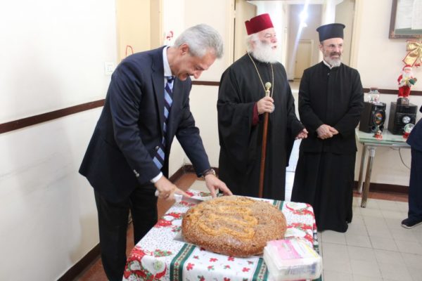 Με καφέ και κεράσματα έκλεισε με τον καλύτερο τρόπο η Πρωτοχρονιά στην Αλεξάνδρεια, μόνο που ο Πατριάρχης κ.κ. Θεόδωρος Β΄, ακούραστος δεν είχε ολοκληρώσει το καθήκον του, όπως οι ίδιος το έχει ορίσει. Τράβηξε για το Γηροκομείο ΜΑΝΝΑ στην Ελληνική Κοινότητα, όπου εκεί με τον Πατριαρχικό Επίτροπο, Σεβασμιότατο Πηλουσίου κ. Νάρκισσο, επισκέφθηκε τους τροφίμους, το προσωπικό και συνέφαγε μαζί τους. Μαζί του όπως κάθε χρόνο, τόσο στις επισκέψεις στα δωμάτια των ηλικιωμένων, όσο και στο Πρωτοχρονιάτικο τραπέζι, τον συνόδεψαν ο Γενικός Πρόξενος στην Αλεξάνδρεια – και Πρέσβης εδώ και αρκετό καιρό – κ. Αθανάσιος Κοτσιώνης μετά της συζύγου του Ιωάννας και ο Α΄ Αντιπρόεδρος της Ελληνικής Κοινότητας Αλεξανδρείας κ. Ανδρέας Βαφειάδης.