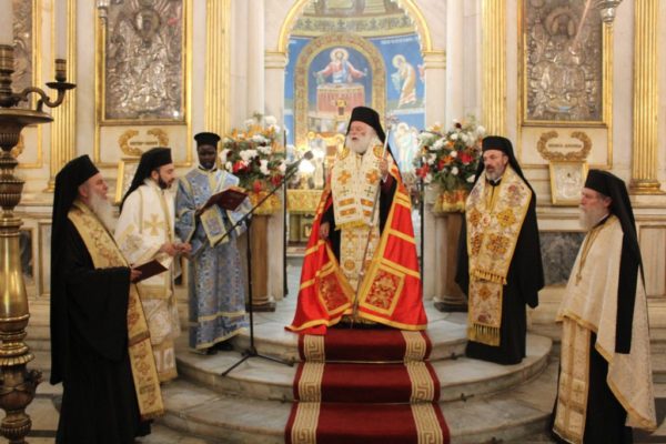 Λειτούργησε ο Σεβασμιότατος Ναυκράτιδος και Αρχιγραμματέας της Ιεράς Συνόδου κ. Παντελεήμων, συλλειτουργώντας με τον Πατριαρχικό Επίτροπο Σεβασμιότατο Πηλουσίου κ. Νάρκισσο, τον Σεβασμιότατο Ταμιάθεως κ. Γερμανό, τον Αρχιμανδρίτη και Σχολάρχη της Πατριαρχικής Σχολής κ. Ισαάκ και έψαλλε ο Πρωτοπρεσβύτερος Πάνος Γαζής με μαθητές της Ιερατικής Σχολής από τα αφρικανικά κράτη.