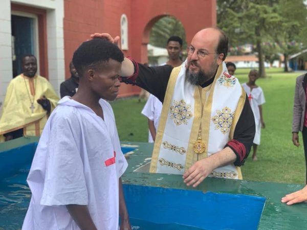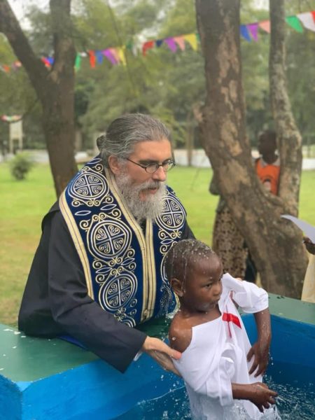 Μετά την απόλυση της Θείας Λειτουργίας, ο Μακαριώτατος πλαισιούμενος από το Σεβασμ. Μητροπολίτη Αξώμης κ. Δανιήλ και τον επιχώριο Θεοφιλ. Επίσκοπο Αρούσας και Κεντρικής Τανζανίας κ. Αγαθόνικο, ετέλεσε ομαδικές βαπτίσεις 25 κατηχουμένων ιθαγενών στο υπαίθριο βαπτιστήριο του προαναφερθέντος Ιερού Ναού. Ο Πατριάρχης εμφανώς συγκινημένος, καλωσόρισε τους νεοφώτιστους στη μεγάλη οικογένεια της Ορθόδοξης Εκκλησίας και χάρισε σε όλους από έναν μικρό επιστήθιο σταυρό, τους προέτρεψε δε να αγαπούν την Εκκλησία και να διαφυλάξουν τον θησαυρό της Χάριτος του Παναγίου Πνεύματος που έλαβαν με το Μυστήριο του Χρίσματος σε όλη τους την ζωή.