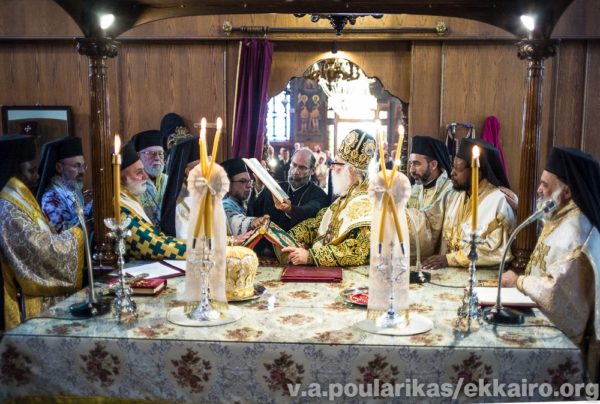 Η Κυριακή 7 Απριλίου ήταν μια διπλά χαρμόσυνη ημέρα για την Ελληνορθόδοξη Εκκλησία μας στο Κάιρο. Στον Άγιο Νικόλαο, τον Καθεδρικό Ναό του Πατριαρχείου Αλεξανδρείας στο Χαμζάουι, η Α.Θ.Μ. ο Πάπας και Πατριάρχης Αλεξανδρείας κ.κ. Θεόδωρος Β’ προέστη της Πατριαρχικής Θείας Λειτουργίας και της ανύψωσης του Τιμίου Σταυρού, αλλά και της χειροτονίας του νέου Επισκόπου Τζούμπα και Νοτίου Σουδάν Κωνσταντίνου.