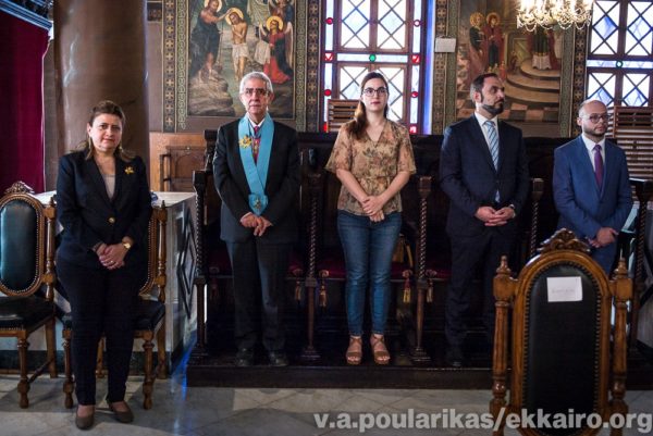 Στην Ευχαριστιακή Σύναξη και την εις Αρχιερέα χειροτονία του Θεοφιλεστάτου Επαρχιούχου Επισκόπου Τζούμπα και Νοτίου Σουδάν κ. Κωνσταντίνου παρέστησαν εκπρόσωποι των Πρεσβειών Ελλάδος και Κύπρου στην Αίγυπτο, ως και των Ελληνικών Συλλόγων και φορέων του Καϊρου.