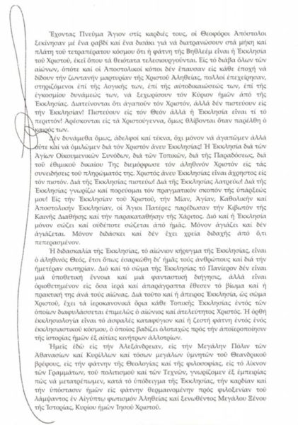 Ἱερώτατοι καί Θεοφιλέστατοι ἀδελφοί καί τέκνα ἐν Κυρίῳ ἀναγεννηθέντα,