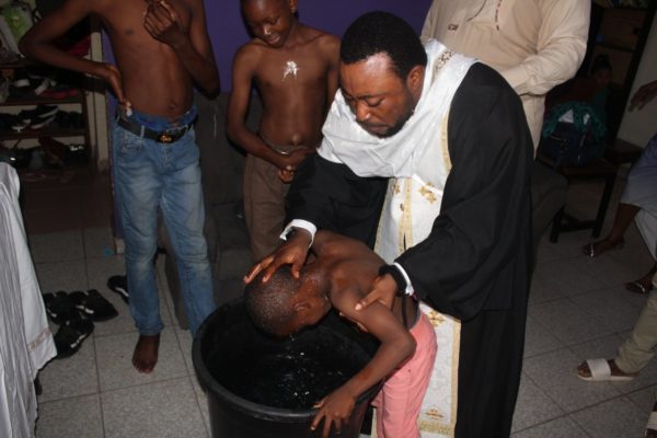 Με την Ευλογία του Σεβ. Μητροπολίτου Νιγηρίας κ. Αλεξάνδρου, ο Πανοσ. Αρχιμ. π. Κορνήλιος Osuji, ο οποίος μάλιστα ολοκλήρωσε τις σπουδές του στην Ελλάδα το περασμένο έτος, τέλεσε τη βάπτιση πέντε παιδιών και την επόμενη ημέρα την Θεία Λειτουργία, σε σπίτι ορθοδόξων, όπου προσωρινά στεγάζεται η Εκκλησίας της ορθόδοξης κοινότητας, στην πρωτεύουσα της Νιγηρίας, την Αμπούτζα.